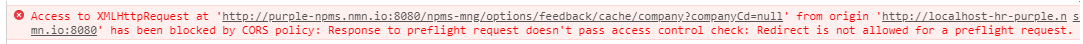 Response to preflight request doesn't pass access control check: Redirect is not allowed for a preflight request